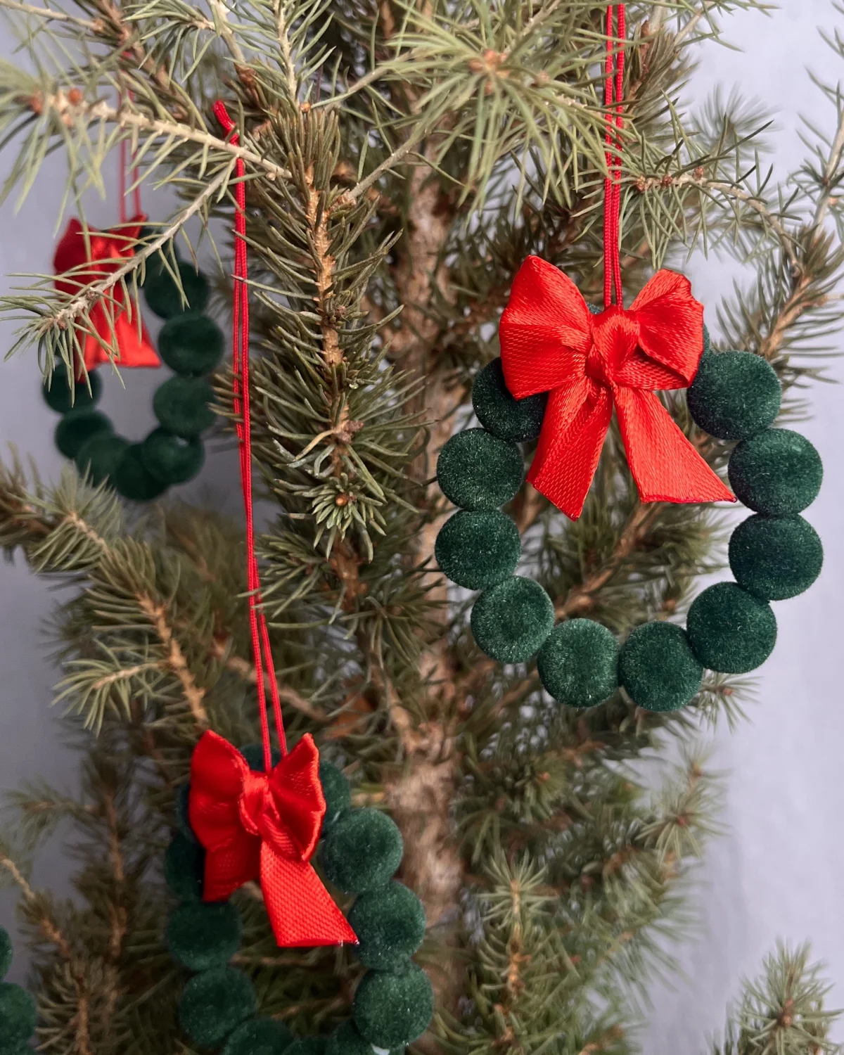 Wprowadź do swojego świątecznego wystroju nutę klasycznej elegancji z uroczymi welurowymi zawieszkami. Każdy wieniec powstaje ręcznie w naszej polskiej pracowni, gdzie nowoczesne rzemiosło spotyka się z dbałością o każdy detal.