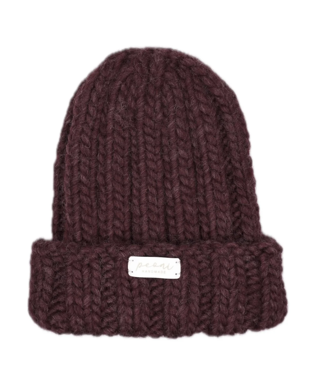 PEONI czapka 100% wełna gruba bordo