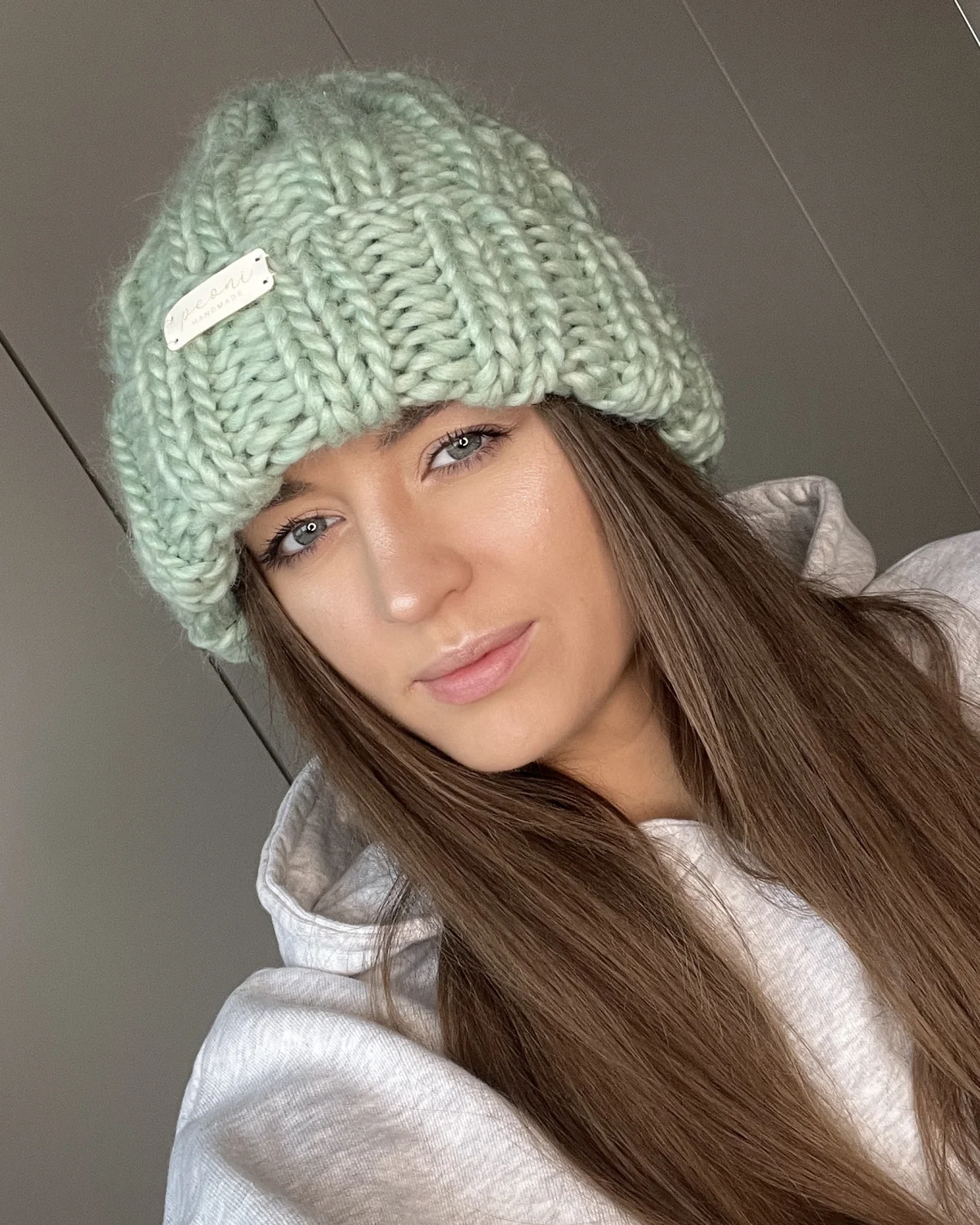 PEONI czapka 100% wełna gruba mięta